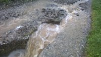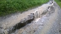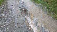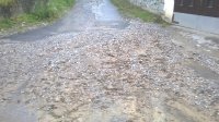 Výdatné víkendové dažde spôsobili poškodenie cesty v miestnej časti Červené. V tejto oblasti bude potrebné vykonať opravu miestnej komunikácie. V súčasnosti taktiež prebieha čistenie ciest a odstraňovanie nánosov v iných častiach obce.