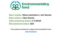 Nákup malotraktora SOLIS 26 9+9 reverz na zber triedeného odpadu prináša pre obec Nesluša významné prínosy z hľadiska regionálneho rozvoja a zlepšenia životných podmienok obyvateľov. Malotraktor umožňuje efektívnejší a pravidelnejší zber triedeného odpadu, čo vedie k lepšiemu manažmentu komunálneho odpadu v obci. Tým sa znižuje riziko hromadenia odpadu a zlepšuje sa čistota a estetika verejných priestorov, čo pozitívne vplýva na kvalitu života obyvateľov. Dostupnosť pravidelného a spoľahlivého zberu triedeného odpadu motivuje obyvateľov k zodpovednejšiemu triedeniu odpadu. To podporuje environmentálne povedomie a správanie v obci, čo prispieva k dlhodobému udržateľnému rozvoju regiónu.Efektívne triedenie odpadu znižuje množstvo odpadu, ktorý končí na skládkach, čo vedie k nižším nákladom na jeho likvidáciu. Ušetrené prostriedky môže obec investovať do ďalšieho rozvoja infraštruktúry alebo komunitných projektov, čo prospieva celej komunite. Lepšie triedenie odpadu priamo prispieva k zníženiu znečistenia a ochrane prírodných zdrojov. Redukcia odpadu na skládkach a zvýšenie miery recyklácie vedie k menšiemu znečisteniu pôdy, vody a ovzdušia, čo má pozitívny vplyv na zdravie obyvateľov a kvalitu životného prostredia v regióne. Implementácia efektívneho systému triedeného zberu odpadu môže viesť k vytvoreniu nových pracovných miest v oblasti recyklácie,spracovania odpadu a údržby infraštruktúry. Efektívne nakladanie s odpadom znižuje riziko šírenia chorôb a kontaminácie prostredia, čo priamo zlepšuje verejné zdravie. Pravidelný a efektívny zber triedeného odpadu zvyšuje spokojnosť obyvateľov s poskytovanými službami obce. Keď sa obec stará o čistotu a ekologické zázemie, obyvatelia sa cítia viac zapojení do miestneho života a sú hrdí na svoju komunitu. Nákup malotraktora na zber triedeného odpadu prináša mnohostranné prínosy, ktoré zlepšujú kvalitu života obyvateľov, podporujú ekologické a udržateľné správanie, a zároveň prispievajú k rozvoju celého regiónu. Tento krok je strategicky významný pre dlhodobý rozvoj obce a zlepšenie životných podmienok jej obyvateľov.