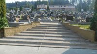 Pokládka zámkovej dlažby a oprava schodov na cintoríne. Deň ukončenia: 12. 08. 2015.