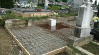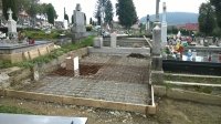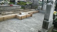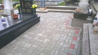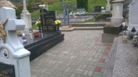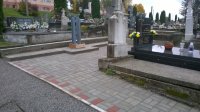 Pokládka zámkovej dlažby a oprava chodníkov na cintoríne.