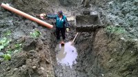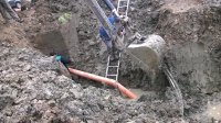 Z dôvodu zlého určenia odbočenia na napojenie boli narušené káble T-com. Vykopaná jama nebola zahádzaná, pretože spoločnosť T-com musí najskôr opraviť narušenú optiku.